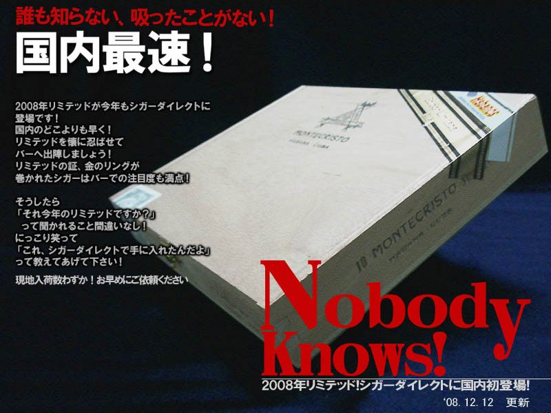 2008年11月に国内のどこよりも早くシガーダイレクトでご案内したNobodyKnows!2008!