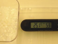 それからは水を新たに入れなくても、ほったらかしで65%から68%をキープする、というびっくりの結果!今私は水をビーズの半分くらいまで入れるようにしました。私の好きな完璧68%です! |