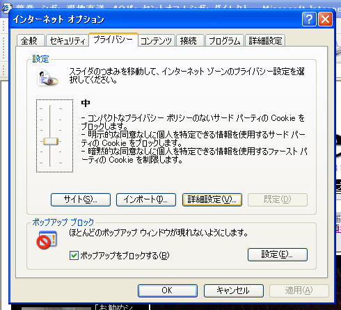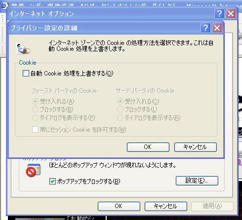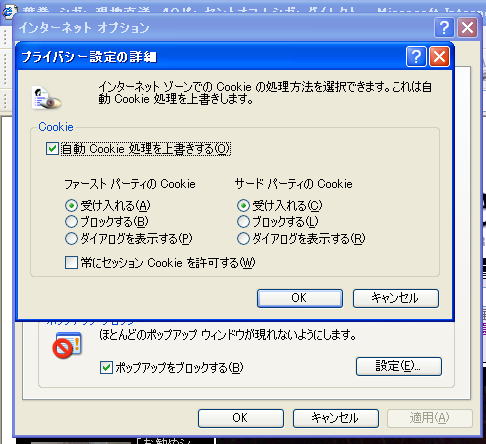 左図と同じになるように、【受け入れる】にチェックしてください。(二つあります。)