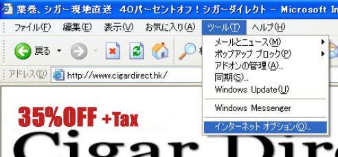 【ツール】→【インターネットオプション】を選ぶ。 |